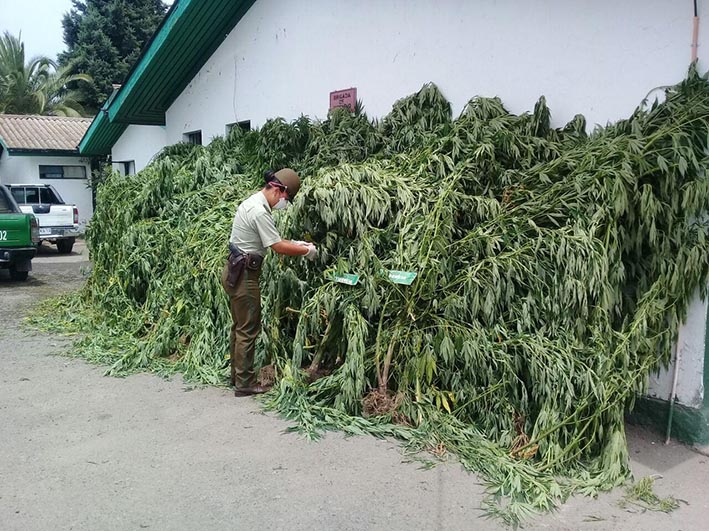 Un total de 65 plantas de marihuana fueron decomisadas por carabineros en la parte posterior de una vivienda en el sector El Perejil en la zona rural de la comuna de Chimbarongo.