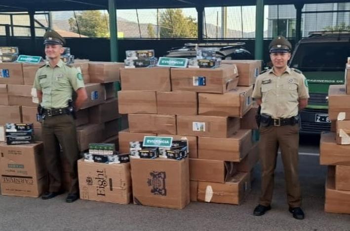 Tras desarrollar diversas diligencias investigativas, carabineros de la SIP de la Cuarta Comisaría Rengo incautó 87 mil cajetillas de cigarros de contrabando y detuvo a dos personas.