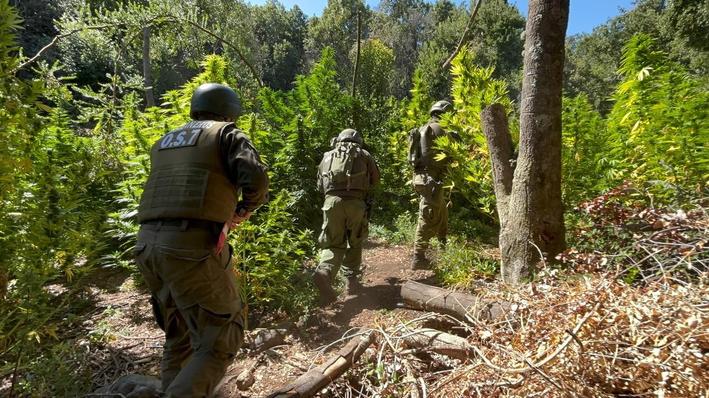 En el marco del Plan Cannabis Sativa impulsado por carabineros a nivel nacional para detectar, incautar y destruir plantaciones ilegales de marihuana, el OS-7, logró decomisar en la quebrada El Almendro, en la localidad de Agua Buena, precordillera de San Fernando, 4.567 plantas del alucinógeno, además de 3 kilos 905 gramos de droga elaborada.