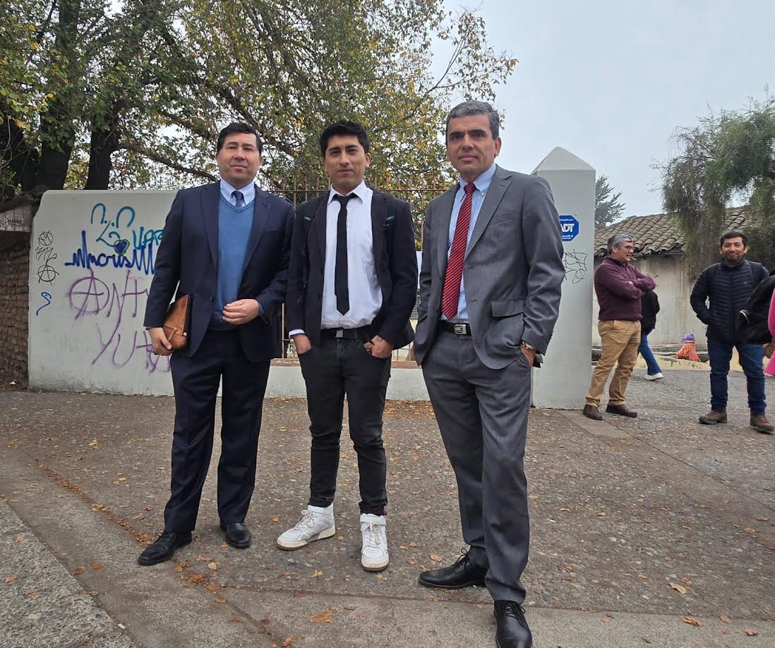 “Como querellantes estamos satisfechos que la justicia esté avanzando”, dijo el abogado Carlos Gajardo, quien aparece junto a su colega Pablo Norambuena y el esposo de la víctima Juan Muñoz.