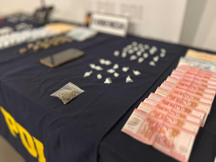 En el procedimiento, se incautaron 213,24 gramos de clorhidrato de cocaína, 2,14 gramos de cannabis procesada, especies comúnmente utilizadas para la dosificación de la droga y más de $500.000 en efectivo, producto del negocio ilícito.