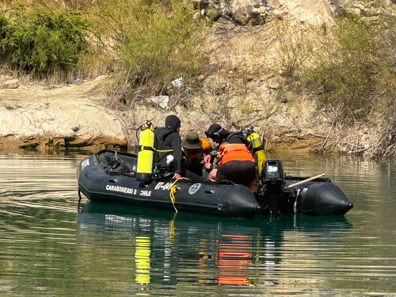 En las labores de búsqueda trabajó bomberos junto a Carabineros del Grupo de Operaciones Policiales Especiales, GOPE de la Prefectura Cachapoal, quienes cerca del mediodía de ayer ubicaron y rescataron el cadáver del extranjero de 23 años.