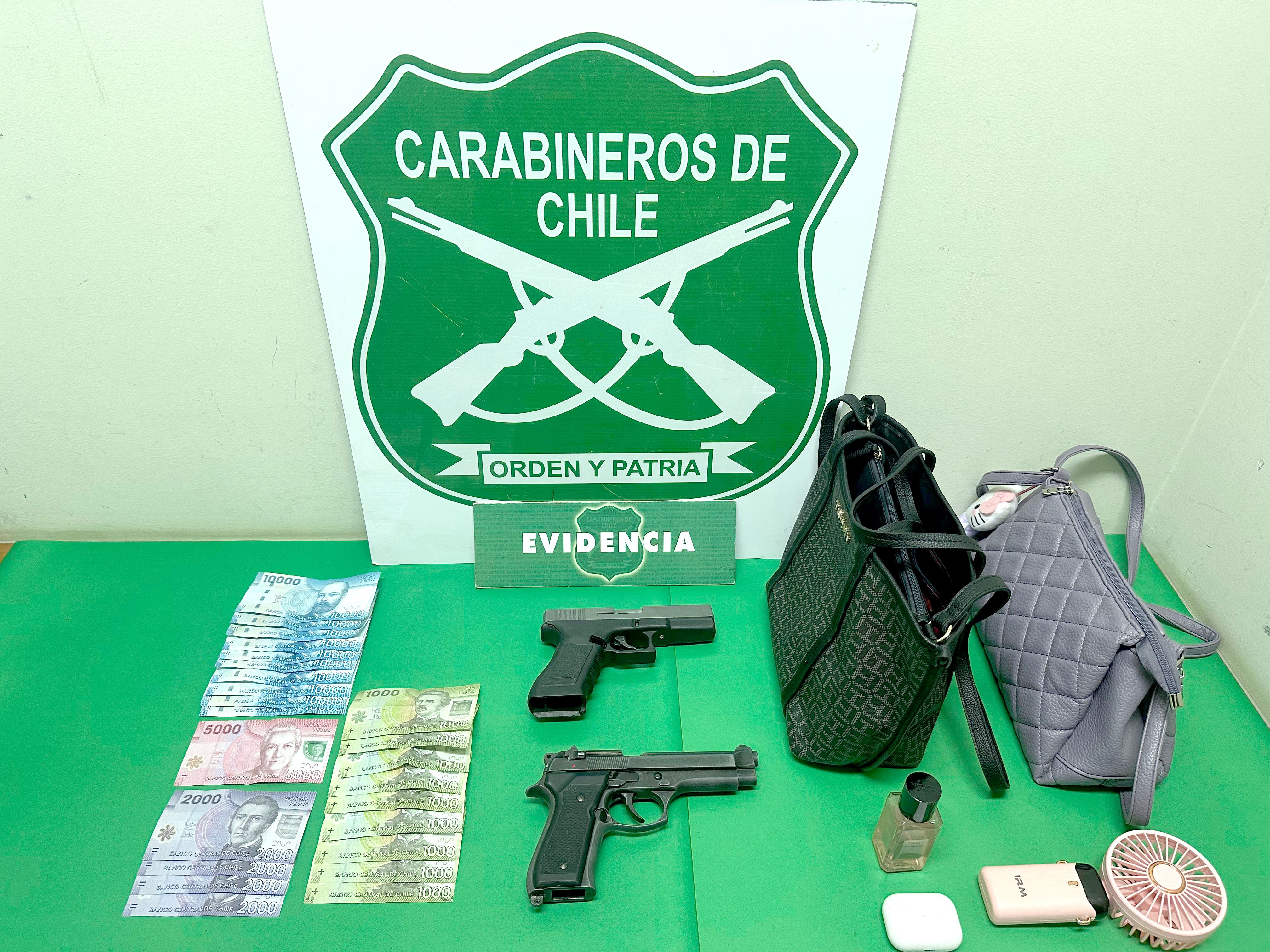 En el procedimiento se recuperaron las especies sustraídas y se incautaron dos armas a fogueo desde el interior del móvil. No se registraron personas lesionadas.