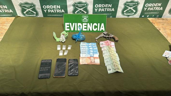 Posteriormente, en horas de la tarde, personal policial logró ubicar a los individuos en la intersección de calle Rucatalca con pasaje Cunaco, donde fueron fiscalizados, encontrando en su poder un arma de fuego tipo revólver, munición, droga y dinero en efectivo, procediendo a su detención.