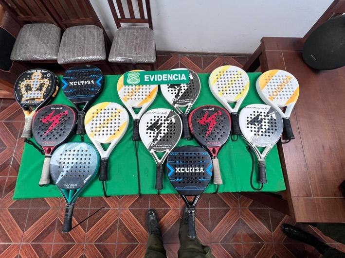 Entre las especies recuperadas se encuentran múltiples paletas de pádel de distintas marcas, un parlante, una máquina de café automática y la suma de $111.000 en dinero en efectivo.