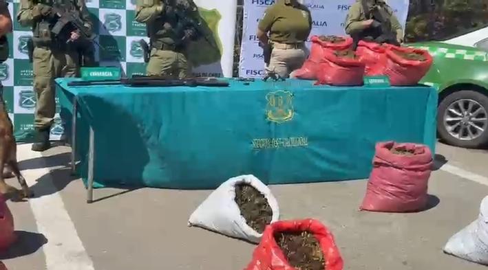 En tanto, el segundo día, tras un recorrido de infantería se ubicaron 13.980 plantas del género Cannabis Sativa, en proceso de crecimiento, más 30 kilos 50 gramos de marihuana a granel, 1 revólver sin marca y modelo, 1 rifle calibre .22 con 3 municiones en su cargador y 1 rifle de aire comprimido.
