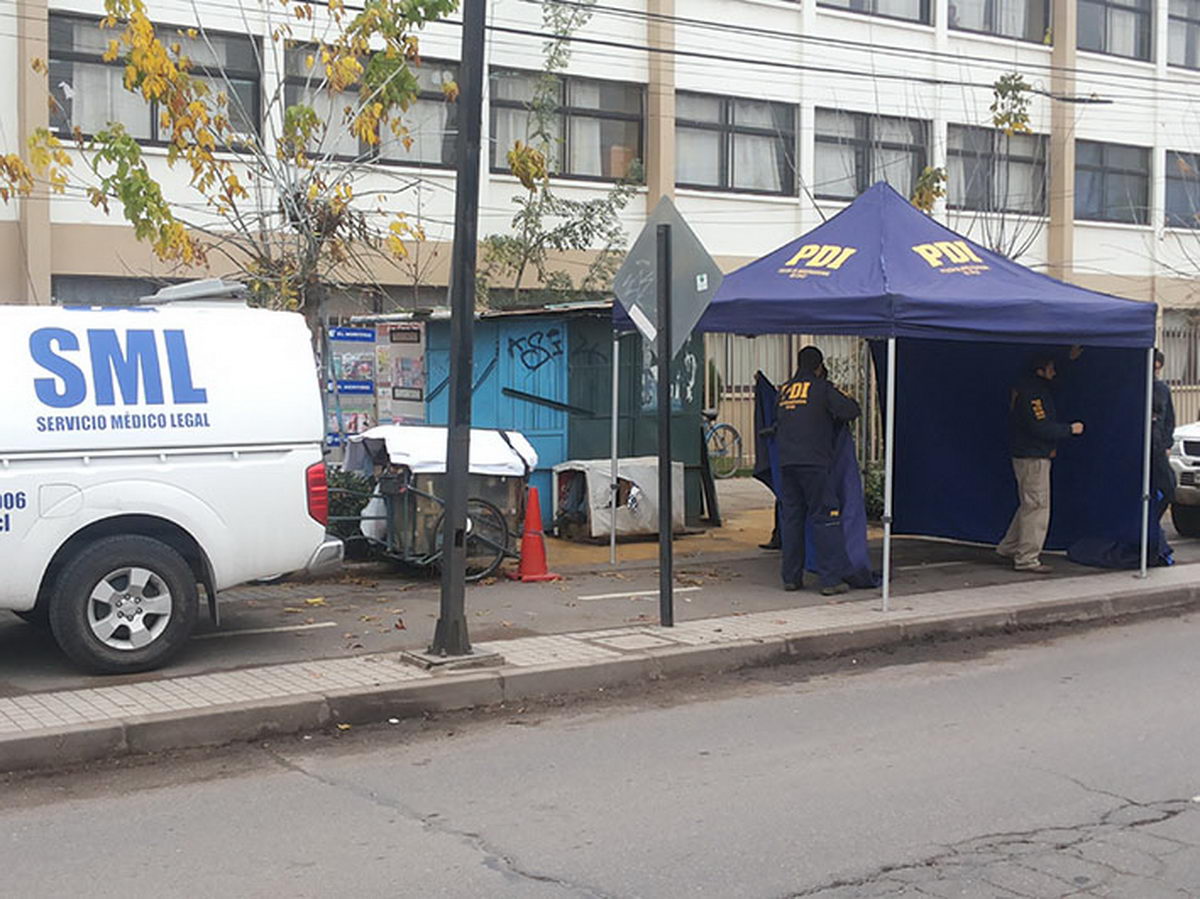 El cuerpo fue encontrado pasadas las 8 de la mañana en la parte posterior de un quiosco de diarios y revistas ubicado en la intersección de avenida Bernardo O´Higgins con calle Tres Montes, frente al colegio Olegario Lazo Baeza.